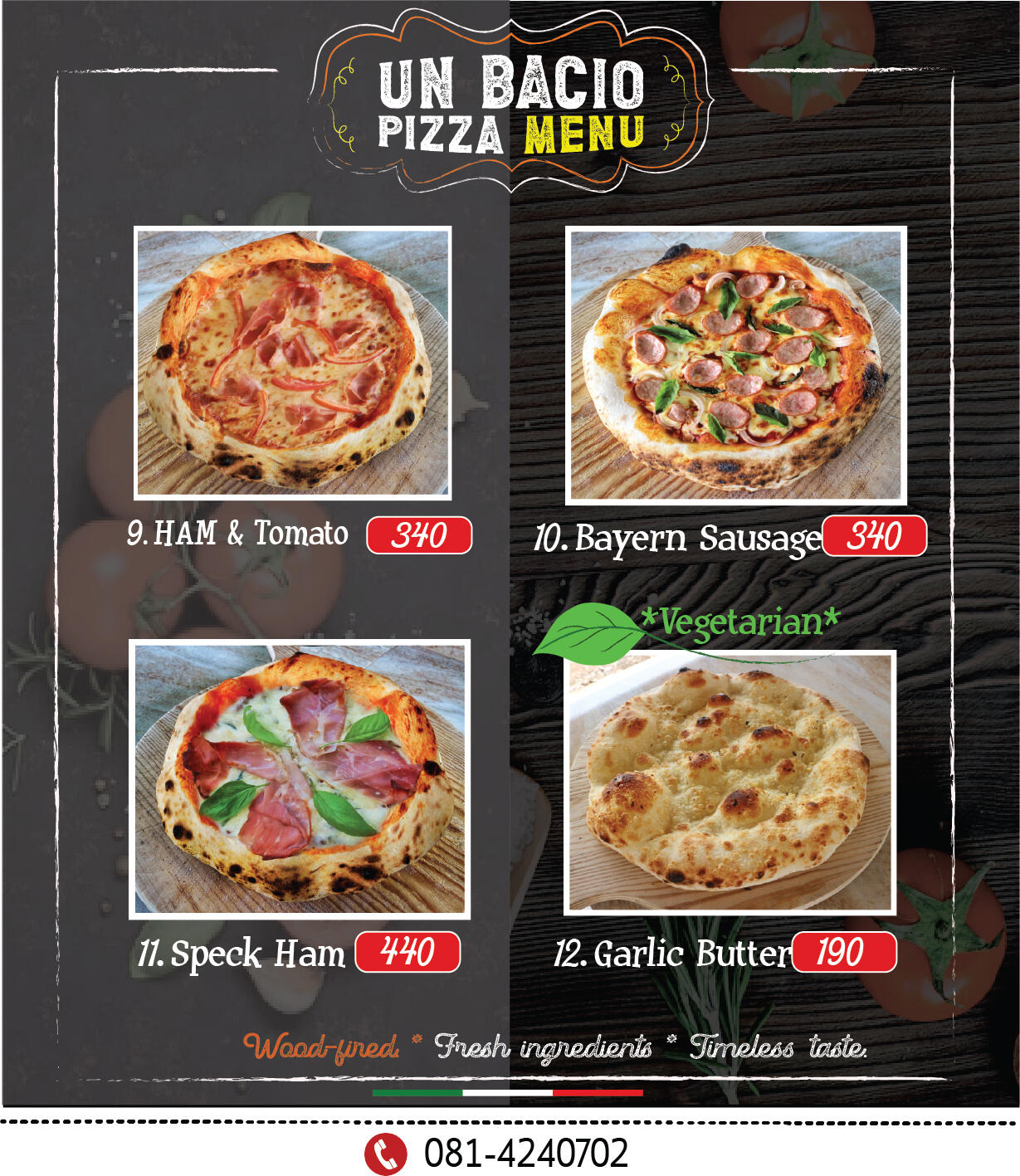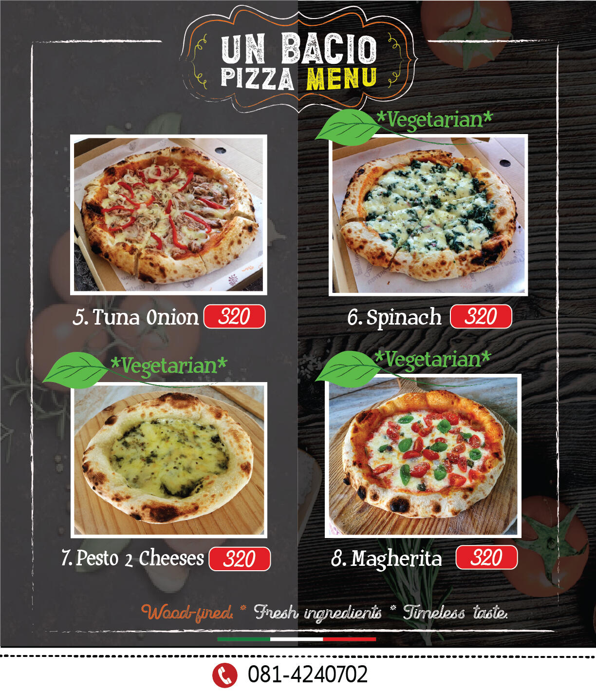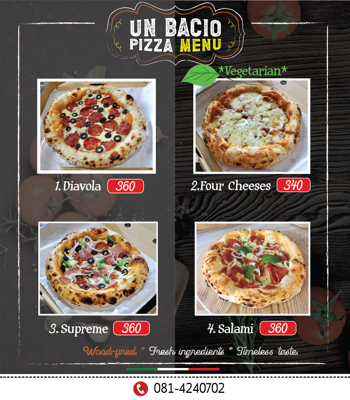 Un Bacio Pizza Menu website.We will be pleased to answer