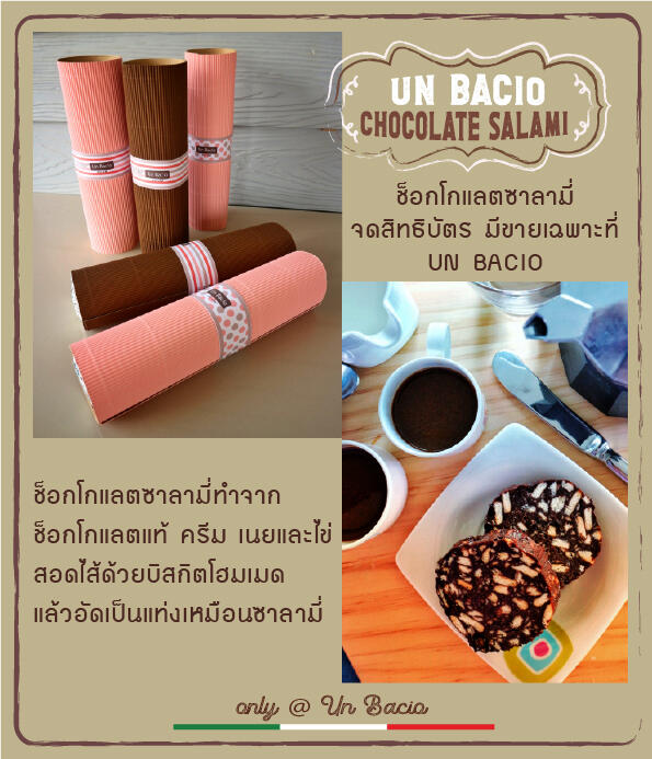 ช็อกโกแลตแท้ที่มีความกลมกล่อมของความขม และหวานหอมนุ่มนวลอย่างลงตัว มีขายเฉพาะที่ Un Bacio เท่านั้น และเป็นเอกลักษณ์ของร้านที่ขายมากว่า 10 ปี ต้องลองแล้ว