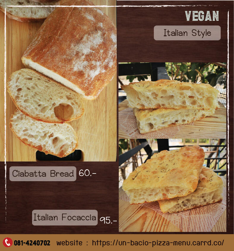 ขนมปังเชียบัตต้า 180 g./ชิ้น.............60.-11. Foccacia bread